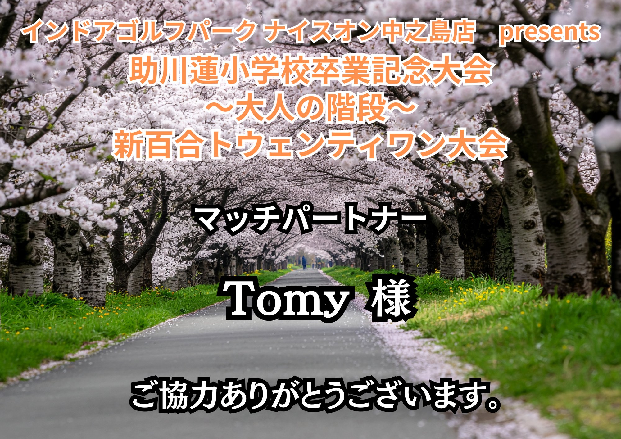 3月21日(土)新百合ヶ丘大会へTomy 様がマッチパートナーとして協力いただきました。