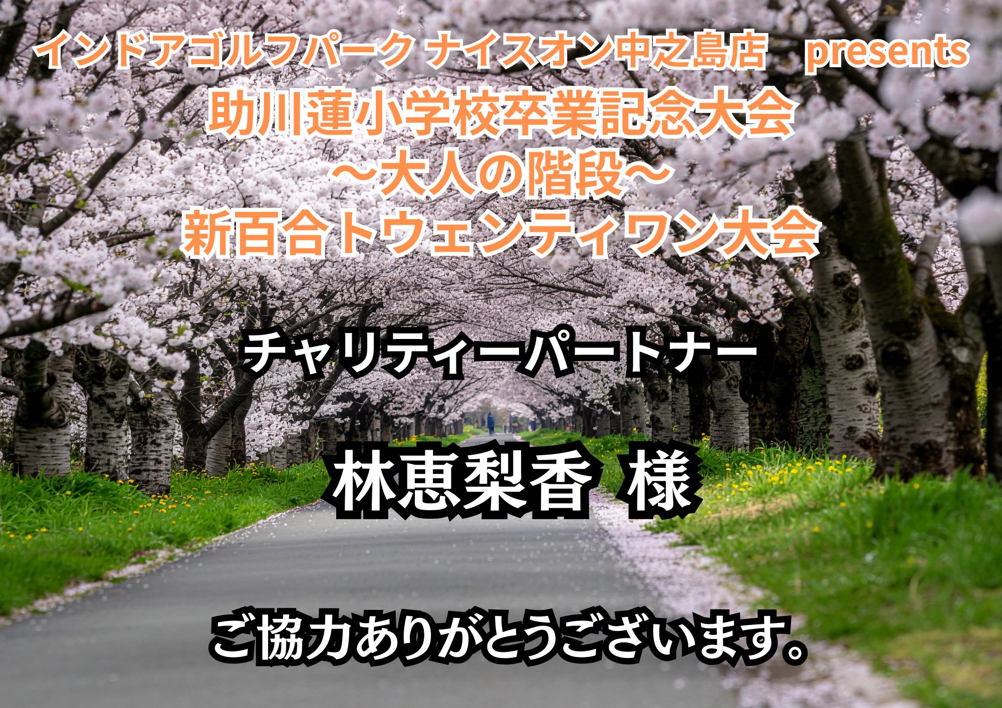 3月21日(土)新百合ヶ丘大会へ林恵梨香 様がチャリティーパートナーとして協力いただきました。