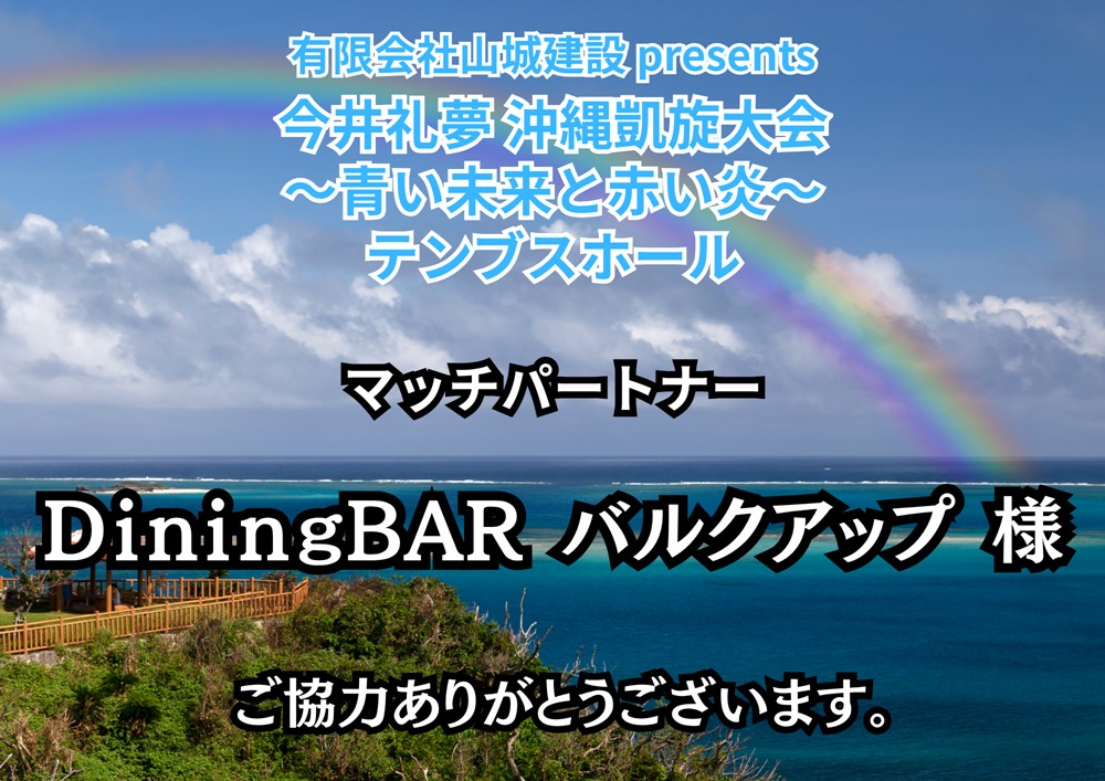 4月12日(日)沖縄大会へDiningBARバルクアップ 様がマッチパートナーとして協力いただきました。
